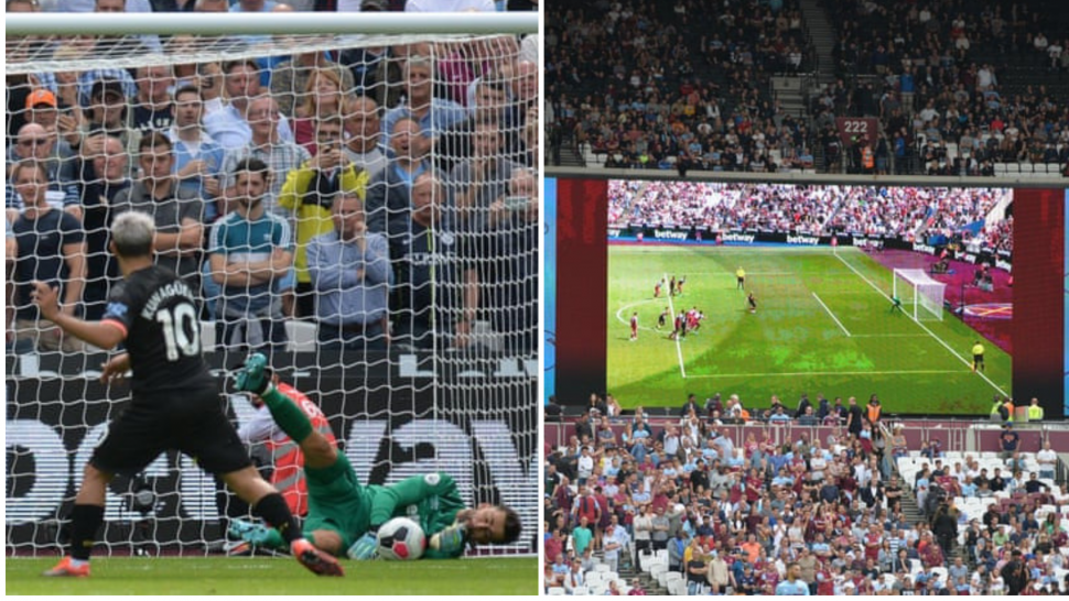 ប៉ុន្តែក្រោយការត្រួតពិនិត្យ មន្ត្រី VAR បានសម្រេចឲ្យបាល់ប៉េណាល់ទីសាជាថ្មី ក្រោយឃើញកីឡាករ West Ham គឺ Declan Rice បានរំលោភចូលទៅក្នុងប្រអប់គ្រោះថ្នាក់អំឡុងពេល Aguero ស៊ុតប៉េណាល់ទី។