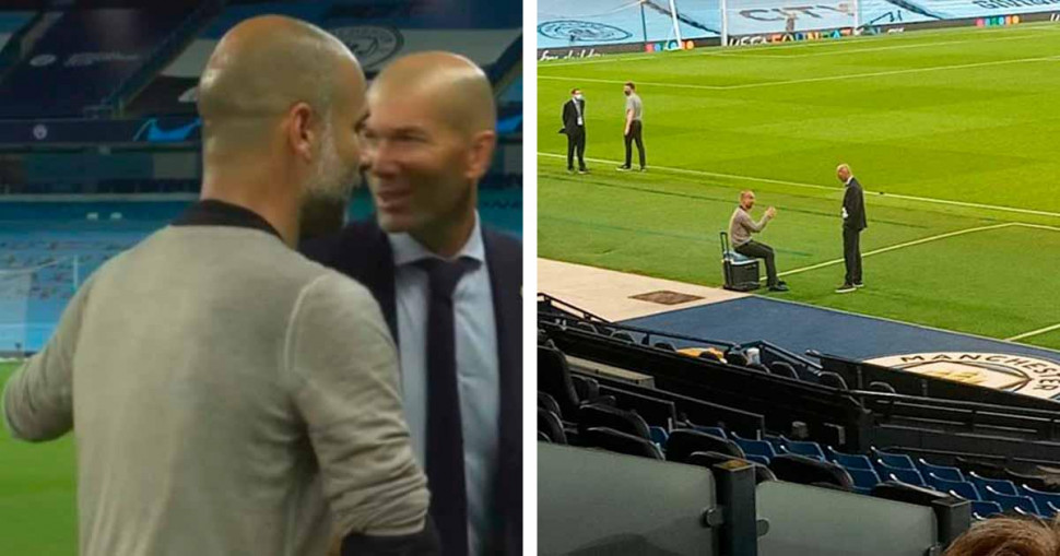 Pep Guardiola បានអង្គុយនិយាយគ្នាជាមួយលោក Zidane អ្នកចាត់ការក្រុម Real Madrid មួយសន្ទុះក្រោយពីចប់ការប្រកួតដែល Man City យកឈ្នះក្នុងលទ្ធផល ២-១ ជើងទី២នៅ UCL កន្លងទៅនេះ។
