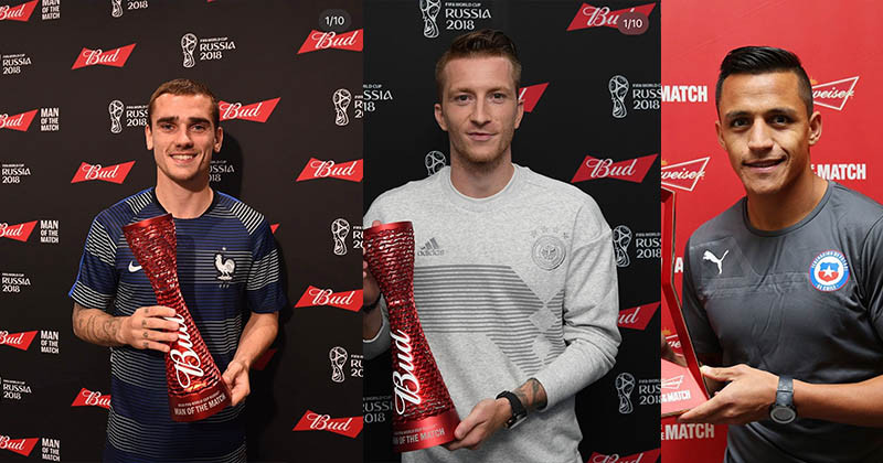 ដោយកាលពីឆ្នាំ២០១៨កន្លងទៅក្នុងពានរង្វាន់ FIFA World Cup នេះ គឺខ្សែប្រយុទ្ធ Antoine Griezmann ជាអ្នកទទួលបាន MOTM ក្នុងការប្រកួតចុងក្រោយរវាងក្រុមជម្រើសជាតិបារាំង ជាមួយក្រុមក្រូអាត។ ខណៈដែលរូបគេក៏ជាអ្នកទទួលបានពាន MOTM នេះច្រើនផងដែរ ពោលគឺដល់ទៅ៣ដងឯណោះក្នុងព្រឹត្ដិការណ៍នេះ។ ដោយឡែកកីឡាករដទៃទៀតដែលធ្លាប់ឈ្នះរង្វាន់នេះដែរនៅឆ្នាំ២០១៨ ក៏មានច្រើនទៀតដែរដូចជា៖