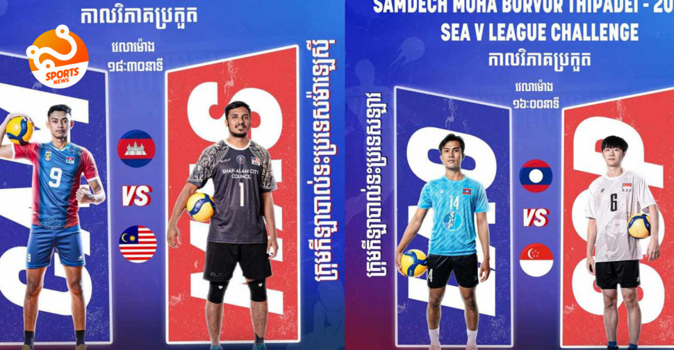 ការប្រកួតបាល់ទះដណ្ដើមប្រាក់រង្វាន់សម្ដេចមហាបវរធីបតី SEA V League Challenge នឹងចាប់ផ្ដើមនៅម៉ោង៤រសៀលថ្ងៃទី៣០ ខែសីហា ឆ្នាំ២០២៤នេះ ដែលមាន៤ប្រទេសចូលរួម ឡាវ ម៉ាឡេស៊ី សិង្ហបុរី និងម្ចាស់ផ្ទះកម្ពុជា។