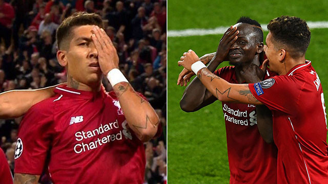 ខ្សែស្លាប Sadio Mane ត្រូវបានសង្កេតឃើញថា ចូលចិត្តធ្វើត្រាប់ការអបអរក្រោយការស៊ុតបញ្ចូលទី តាមមិត្តរួមក្រុម Roberto Firmino។