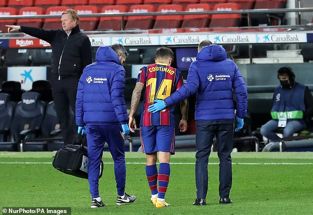 កីឡាករវ័យ២៩ឆ្នាំខាងលើនេះ ខកខានបង្ហាញខ្លួនឱ្យក្រុមអ្នកមានបុណ្យ Barcelona ចាប់តាំងពីរូបគេចូលលេងទល់ក្រុម Eibar ហើយមានបញ្ហារបួសនៅថ្ងៃទី២៩ខែធ្នូឆ្នាំ២០២០កន្លងទៅ។ Coutinho បានព្យាបាលនៅក្រុង Barcelona និងសម្រាក៣ខែមកហើយ ប៉ុន្តែជាចុងក្រោយរបួសនោះនៅមិនទាន់ជាសះស្បើយនោះទេ។