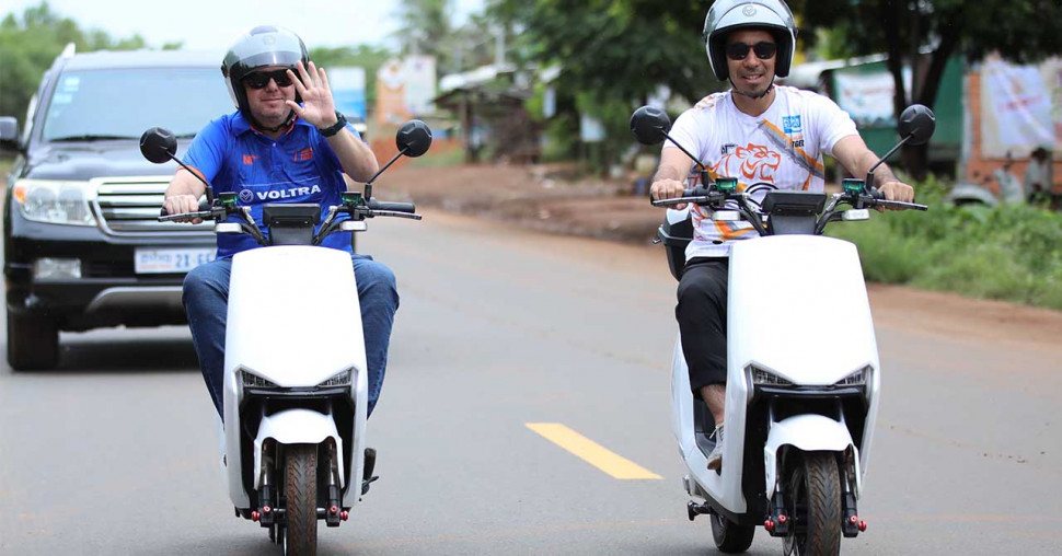 លោក Akihiro Kato ប្រធានក្លឹប Angkor Tiger និងលោក Yann Vaudin អគ្គនាយកក្រុមហ៊ុន Voltra បានធ្វើដំណើរពីភ្នំពេញទៅខេត្តសៀមរាប ដោយជិះម៉ូតូអគ្គិសនីក្នុងន័យការពារបរិស្ថាន គ្មានផ្សែងពុល។