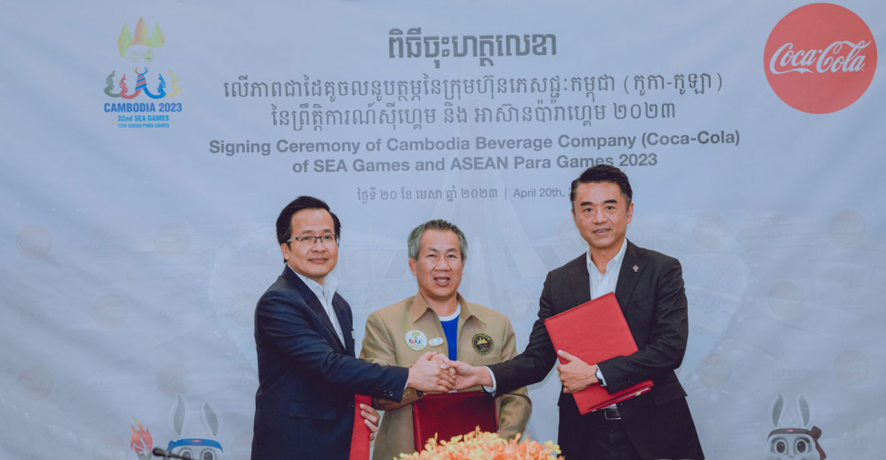 តាមរយៈការចុះហត្ថលេខាលើកិច្ចព្រមព្រៀងជាមួយគណៈកម្មាធិការរៀបចំការប្រកួតកីឡាស៊ីហ្គេមកម្ពុជា (CAMSOC) និងក្រុមហ៊ុន SPORTSMAZING CO.,LTD នៅថ្ងៃនេះ ក្រុមហ៊ុន កូកា-កូឡា កម្ពុជា នឹងប្តេជ្ញាចូលរួមឧបត្ថម្ភពិសេសដល់ព្រឹត្តិការណ៍កីឡាដ៏ធំបំផុតប្រចាំតំបន់នេះ ដែលនឹងប្រារព្ធធ្វើឡើងក្នុងព្រះរាជាណាចក្រកម្ពុជាជាលើកដំបូងមិនធ្លាប់មាន។