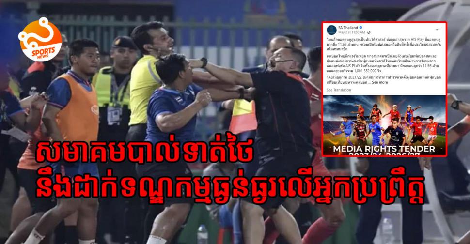 សមាគមកីឡាបាល់ទាត់ថៃ សម្ដែងការសោកស្ដាយ និងសច្ចាដាក់ទណ្ឌកម្មធ្ងន់ធ្ងរចំពោះអ្នកប្រព្រឹត្ត