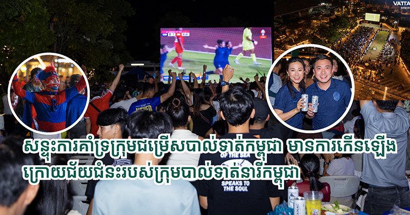 សន្ទុះអ្នកគាំទ្របាល់ទាត់កម្ពុជា មានការកើនឡើង ហើយនេះគឺជាសមិទ្ធផលគួរជាទីមោទកភាពសម្រាប់ក្រុមបាល់ទាត់ជម្រើសជាតិកម្ពុជា គឺយើងបានសាងប្រវត្តិថ្មីមួយ សម្រាប់ប្រទេសជាតិ ពិសេសបាល់ទាត់ក្នុងតំបន់អាស៊ានមានការភ្ញាក់ផ្ញើល បន្ទាប់ពីការប្រកួតបាល់ទាត់នារីកម្ពុជា ឡើងដល់វគ្គផ្តាច់ព្រ័ត្រ ដែលបានធ្វើឡើងនៅប្រទេសឡាវ និងមានការផ្សាយផ្ទាល់នៅទីសាធារណៈតាមទីតាំងមួយចំនួនដូចជា ខេត្តតាកែវ, ខេត្តពោធិ៍សាត់, និង រាជធានីភ្នំពេញ ដោយមានការជួបជុំអ្នកគាំទ្រជាច្រើន ទស្សនាបាល់ទាត់រួមគ្នា និងស្រែកហ៊ោយ៉ាងរីករាយជាពិសេសនៅរាជធានីភ្នំពេញ សួនវឌ្ឍនៈ កាពីតាលឡាហ្វស្តាយផាក ដែលរៀបចំឡើងដោយ ក្រុមហ៊ុន វឌ្ឍនៈ ប៊្រូវើរី ដៃគូឧបត្ថម្ភដ៏ធំសហព័ន្ធកីឡាបាល់ទាត់កម្ពុជា ដែលតែងតែគាំទ្រវិស័យកីឡាកម្ពុជាយ៉ាងសកម្មជាពិសេសកីឡាបាល់ទាត់កម្ពុជាក្នុងនោះក៏បានចូលរួមឧបត្ថម្ភគាំទ្រលីគកំពូលកម្ពុជា ក្លឹបកីឡាបាល់ទាត់ស្វាយរៀង, គីរីវង្សសុខសែនជ័យ, បឹងកេត ព្រមទាំងកម្មវិធីកីឡាជាច្រើនផងដែរ។